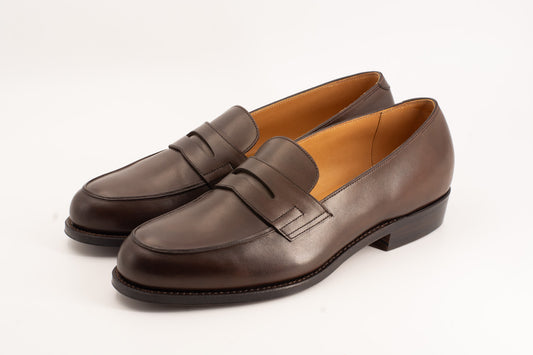 No.2701アップデートしています。皆様こんにちは。暑いですね。長い夏が始まろうとしていますが皆様はいかがお過ごしでしょうか。 今回はこれから夏ということもあり、RENDOのローファーモデルが誕生した経緯と現在アップデートしている内容についてお話しします。 ■ No.2701 誕生の経緯 RENDOのスタート当初は、レースアップモデルを中心に展開しており、多くの方にご好評をいただいておりました。時代の流れとともにドレススタイルからカジュアルスタイルへとシフトが進み、脱ぎ履きしやすいローファーの需要が高まっていた時期、お客様からのご要望を受けて誕生したのがこの「No.2701」です。 近年も、コロナ禍が明けたこともあり、店頭ではローファーをお求めになるお客様が増えてきた印象があります。 そうした背景を踏まえ、「もう一度見直してみよう」ということで、現在このモデルのアップデートに取り組んでおります。 ■ 2701とアップデート中の1stサンプルの比較 それでは2701と現在アップデート中の1stサンプルを比較しながらどこが変わったのか見ていきましょう。 ◎ 木型の見直し これまでの2701は、甲の高さをやや低めに設定しており、フィット感が高い一方で、長時間の着用で甲が痛くなるというお声もいただいていました。今回の1stサンプルでは、甲の高さを3mm高くし、よりゆとりをもたせることで快適性を向上させています。 ◎ デザインの変更(3点) 1.タンとバンドの位置調整 ローファーのタンおよびバンドの位置をやや下げることで履き口が広がり、より足入れしやすい設計に。またバンドのステッチが裏革まで貫通していた従来仕様に対して、今回は貫通させていないため甲にテンションがかかった時に多少のストレッチが効いてくれると思います。 2.履き口の仕様変更従来はテープ仕上げでしたが、今回はビーディング仕様に変更しました。テープはしっかりしたホールド感がある反面、足の骨が出ている方や扁平足の方には痛みが出やすい傾向がありました。ビーディングに変更したことで、足当たりがよりソフトになっています。 3.モカの仕様変更 見た目に関わる点ではありますが、モカのラインを広げ、縫い割りモカを採用しました。ラインを広げることでカジュアルな印象を持たせつつ、シンプルな縫い割りで全体のバランスを整えています。 ■ 着用トライアル中です 現在、スタッフが1stサンプルを実際に着用し、トライアルしている段階です。従来のものより柔らかい印象で快適性が向上しています。... No.2701アップデートしています。皆様こんにちは。暑いですね。長い夏が始まろうとしていますが皆様はいかがお過ごしでしょうか。 今回はこれから夏ということもあり、RENDOのローファーモデルが誕生した経緯と現在アップデートしている内容についてお話しします。 ■ No.2701 誕生の経緯 RENDOのスタート当初は、レースアップモデルを中心に展開しており、多くの方にご好評をいただいておりました。時代の流れとともにドレススタイルからカジュアルスタイルへとシフトが進み、脱ぎ履きしやすいローファーの需要が高まっていた時期、お客様からのご要望を受けて誕生したのがこの「No.2701」です。 近年も、コロナ禍が明けたこともあり、店頭ではローファーをお求めになるお客様が増えてきた印象があります。 そうした背景を踏まえ、「もう一度見直してみよう」ということで、現在このモデルのアップデートに取り組んでおります。 ■ 2701とアップデート中の1stサンプルの比較 それでは2701と現在アップデート中の1stサンプルを比較しながらどこが変わったのか見ていきましょう。 ◎ 木型の見直し これまでの2701は、甲の高さをやや低めに設定しており、フィット感が高い一方で、長時間の着用で甲が痛くなるというお声もいただいていました。今回の1stサンプルでは、甲の高さを3mm高くし、よりゆとりをもたせることで快適性を向上させています。 ◎ デザインの変更(3点) 1.タンとバンドの位置調整 ローファーのタンおよびバンドの位置をやや下げることで履き口が広がり、より足入れしやすい設計に。またバンドのステッチが裏革まで貫通していた従来仕様に対して、今回は貫通させていないため甲にテンションがかかった時に多少のストレッチが効いてくれると思います。 2.履き口の仕様変更従来はテープ仕上げでしたが、今回はビーディング仕様に変更しました。テープはしっかりしたホールド感がある反面、足の骨が出ている方や扁平足の方には痛みが出やすい傾向がありました。ビーディングに変更したことで、足当たりがよりソフトになっています。 3.モカの仕様変更 見た目に関わる点ではありますが、モカのラインを広げ、縫い割りモカを採用しました。ラインを広げることでカジュアルな印象を持たせつつ、シンプルな縫い割りで全体のバランスを整えています。 ■ 着用トライアル中です 現在、スタッフが1stサンプルを実際に着用し、トライアルしてい